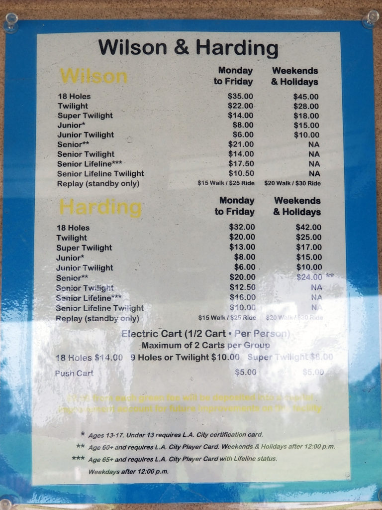 So if you are looking for a nice round of golf, I highly recommend Wilson or Harding for a decent priced, well maintained course. Like I mentioned before, if you want to go to a really nice course, my favorite in this area is Angeles National Golf Club. GPS on the carts, strict dress codes, spread tee times, and very challenging to name a few things, however weekend rates are $130. On the other end, another great place to go with just a few irons and your putter, is the Los Feliz golf course, which is a Par 3, 9 hole, and from what I remember, costed less than going to the range. They have really good hot dogs here too =)
