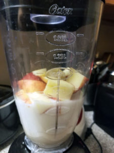 I normally eat a small bowl of cereal or a sandwich when I wake up. After my morning coffee, and quiet time, I hop on my cycle. After that I make a smoothie that consists of apples, bananas, a little honey, milk, and water.