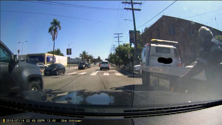 Today, 07/14/2018, I drove to L.A again to take care of some personal matters. I exited the freeway, and while driving down Alvarado, a tow truck driver walked out into my lane, and hit my mirror. At first I thought huh? But after seeing that my right side mirror was facing upward, I pulled over. The tow truck driver drives to where I am, blocks my car, runs to my car cussing, and pushes me against my car. As a human being, even after that, I first asked him if he is ok. Second, I know my rights, I never left my lane, he walked in to the middle of the street and hit MY mirror. He proceeds to say “You broke my f’in arm” and tries to blame me for what happened. So I told him, look, no matter what you say, I have a dash cam which recorded the whole incident, you got out of your car and pushed me, let’s call the police and have them take care of it. At first he’s like go ahead call the cops! As soon as I start to call 911, he get’s in his tow truck and leaves.