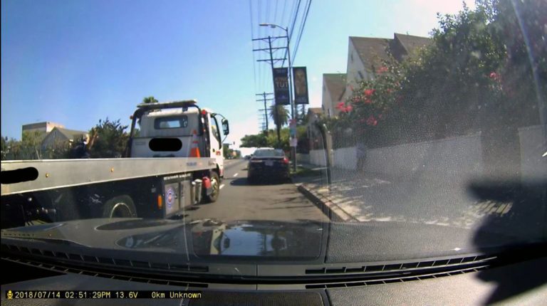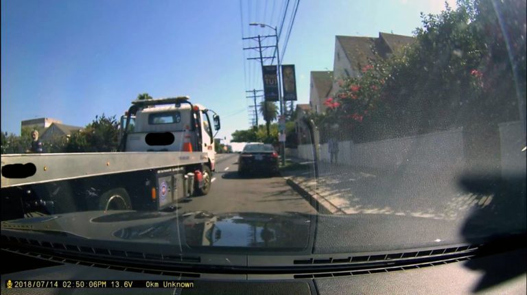 Today, 07/14/2018, I drove to L.A again to take care of some personal matters.  I exited the freeway, and while driving down Alvarado, a tow truck driver walked out into my lane, and hit my mirror.  At first I thought huh?  But after seeing that my right side mirror was facing upward, I pulled over.  The tow truck driver drives to where I am, blocks my car, runs to my car cussing, and pushes me against my car.  As a human being, even after that, I first asked him if he is ok.  Second, I know my rights, I never left my lane, he walked in to the middle of the street and hit MY mirror.  He proceeds to say “You broke my f’in arm” and tries to blame me for what happened.  So I told him, look, no matter what you say, I have a dash cam which recorded the whole incident, you got out of your car and pushed me, let’s call the police and have them take care of it.  At first he’s like go ahead call the cops!  As soon as I start to call 911, he get’s in his tow truck and leaves.