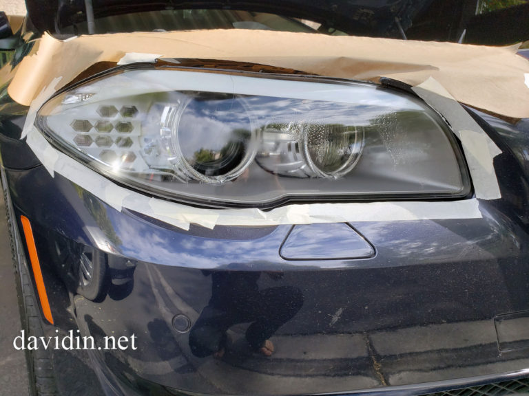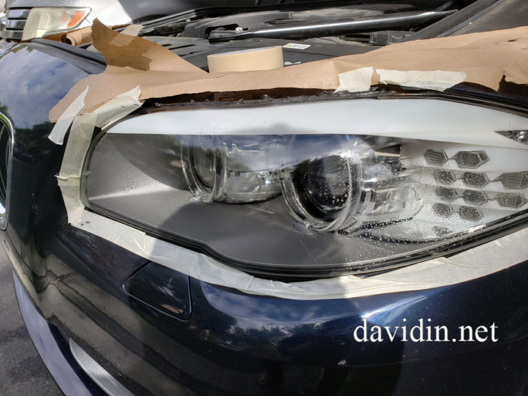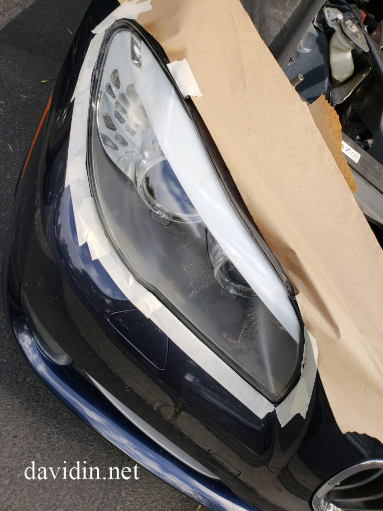 After you are finished up to the sanding part, the included instructions weren’t really clear on this, however I used common sense and wiped down my headlights before applying the clear coat. The clear coat is probably the hardest part of this whole process. The instructions say to only spray left to right. They are dead serious about this. If you spray up and down, the clear coat will not go on evenly because of the shape of the spray.