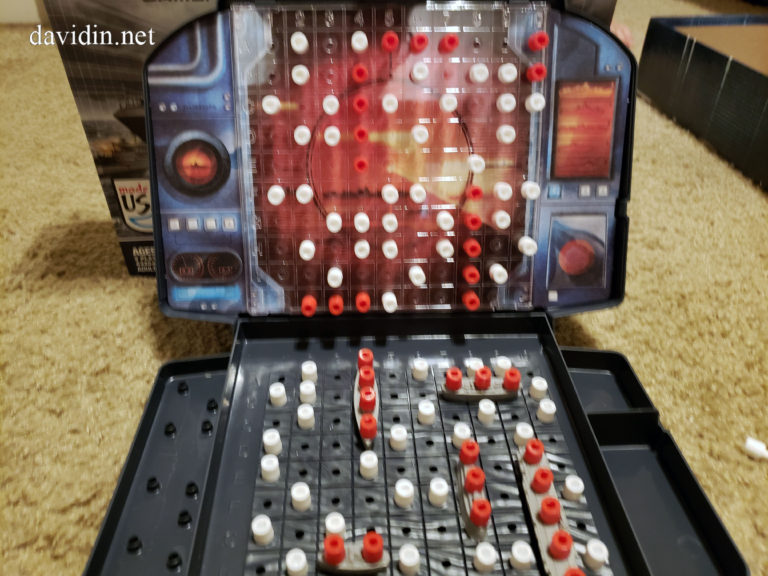 As you can see in the picture above, you keep track of your attacks on the top grid, by marking misses with a white peg, and hits with a red peg. The bottom grid is where you placed your ships before starting, and mark shots that your opponent calls out the same way. Whoever sinks all of their opponents ships first, wins. With Battleship, I will admit the digital versions are a little more fun. Aside from Console or PC versions, even simple online versions of this game are really fun to play with each other. Sounds, graphics, and just clicking the mouse is a lot better than calling out grid numbers with your opponent.