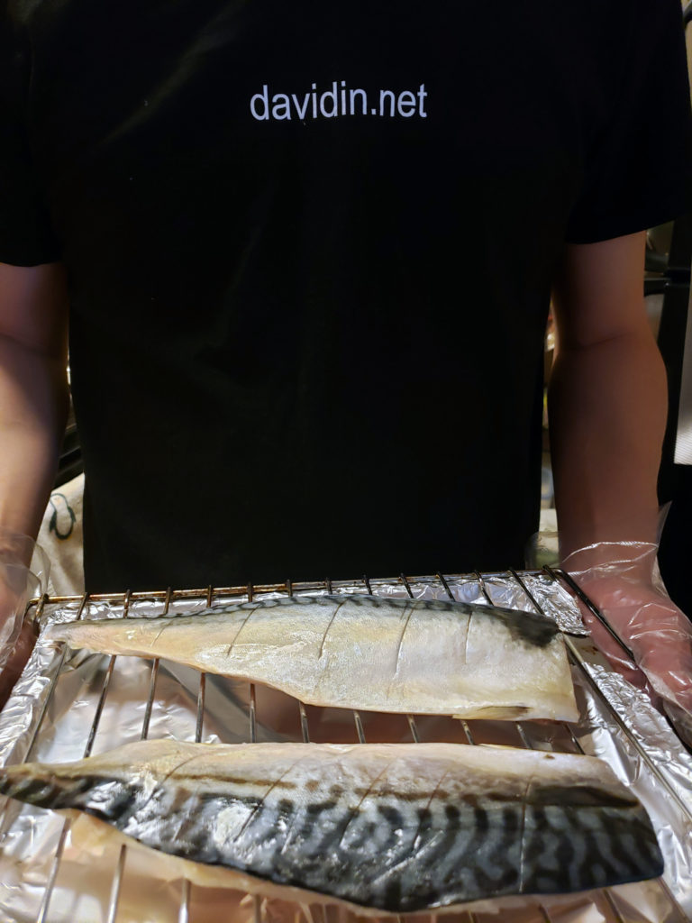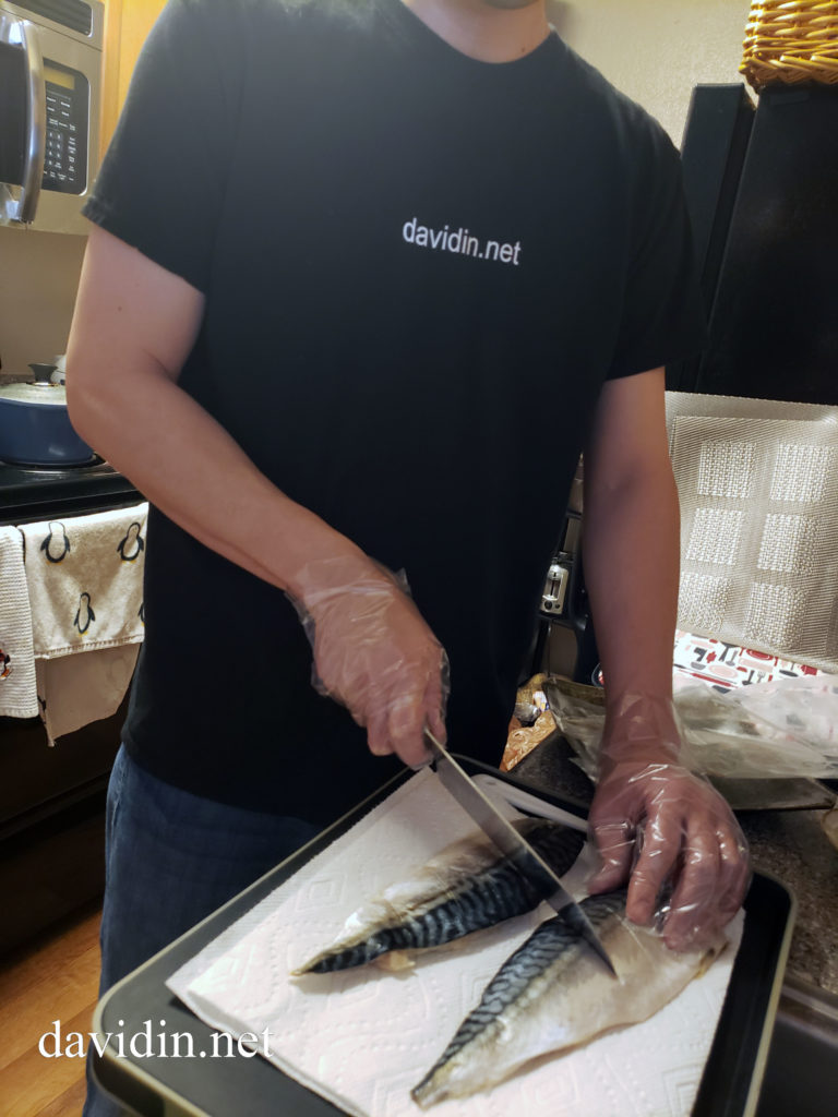And now for the fun part, and the small step that will make your mackerel taste better than other peoples. I splash a little bit of lemon on top of them, and then sear them slightly. I don’t add any salt since they are pre-salted. When I have lemons at home, I will use a real lemon. When I don’t have any lemons handy, I used lemon juice. Here is a short video below to show you how I sear the fillets. Do not over do it with the searing.