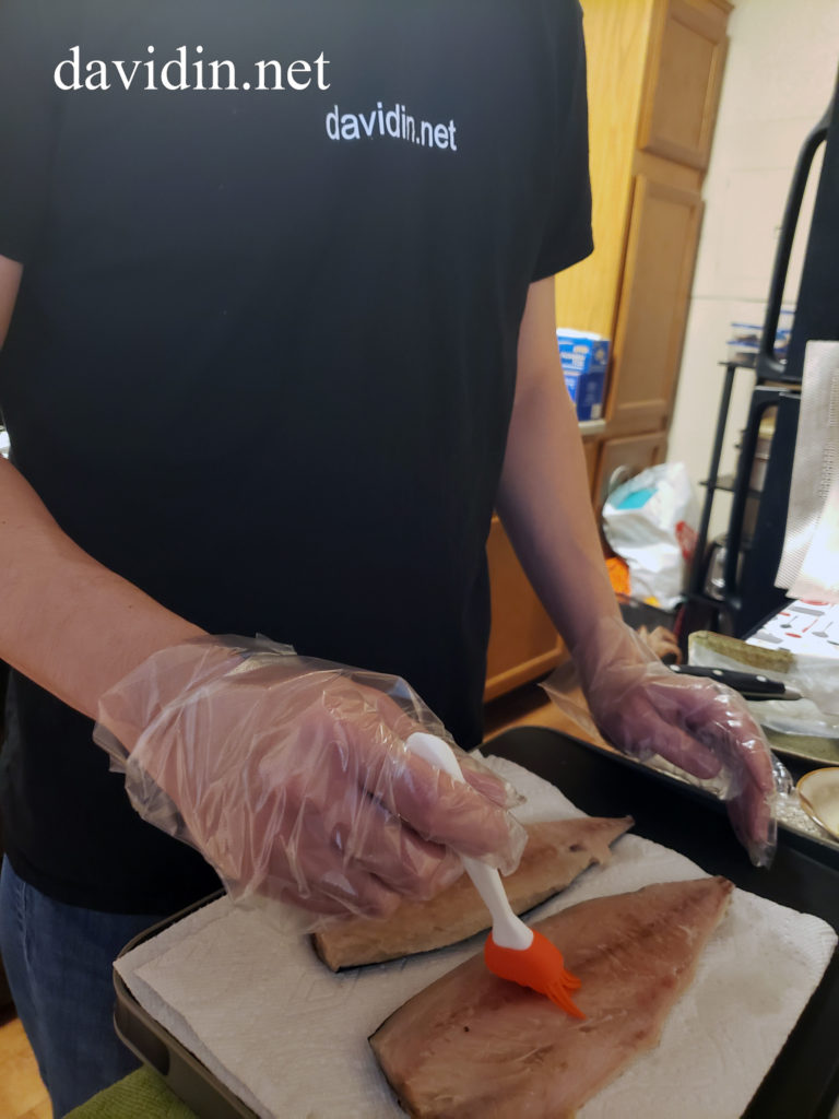 Once you remove the fillets from their packaging, make about 5 slits on each fillet, and then evenly brush some Olive Oil on both sides of the fillets.