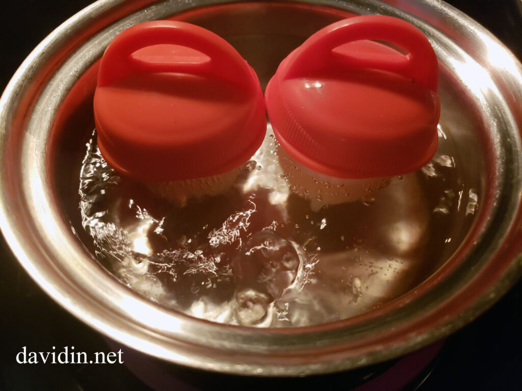 Once you put the twist cap on, place them in boiling water. For me 10 minutes was good for the omelette, and 15 minutes was good for the hard boiled egg. After you eggs are cooked let them sit in cold water for about 4 minutes. And there you have it! Have fun experimenting with your egglettes! I will upload a small youtube clip below to show the final opening and cutting of my egglettes!